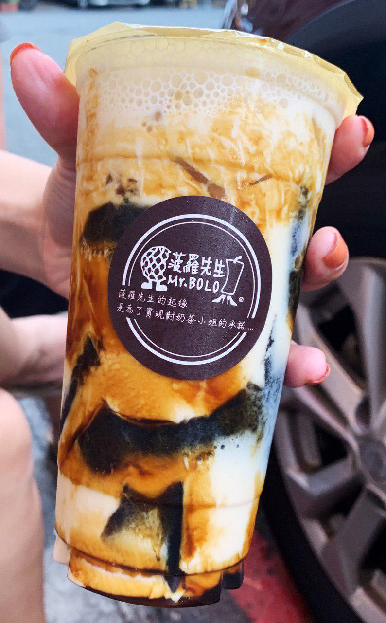 Mr. Bolo in Fengjia Night Market: Brown sugar milk tea paired with Grass Jelly. A twist in the content of the drink and a legendary drink is created. 4/5