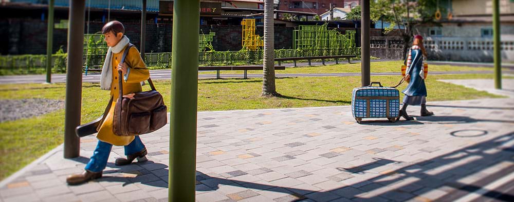 ↑ 宜蘭火車站幾米廣場,將幾米的世界,「向左走,向右走」、「地下鐵」、「星空」真實的呈現,也是全臺第一座幾米主題廣場,來往宜蘭火車站時,不妨停下繁忙的腳步,欣賞精心製作的主題展,探索神秘的幾米空間。